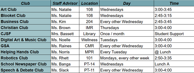 Club fair - thursday, nov. 6th, 2025 in the quad during both lunches